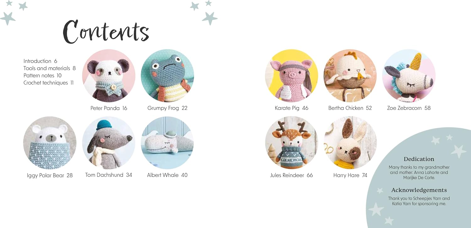 Femke Vindevogel invites you to crochet 10 irresistible animals, each one with its own uplifting story to tell. If you can't decide between Harry Hare and Bertha Chicken, or Albert Whale and Karate Pig, you'll just have to make them all!