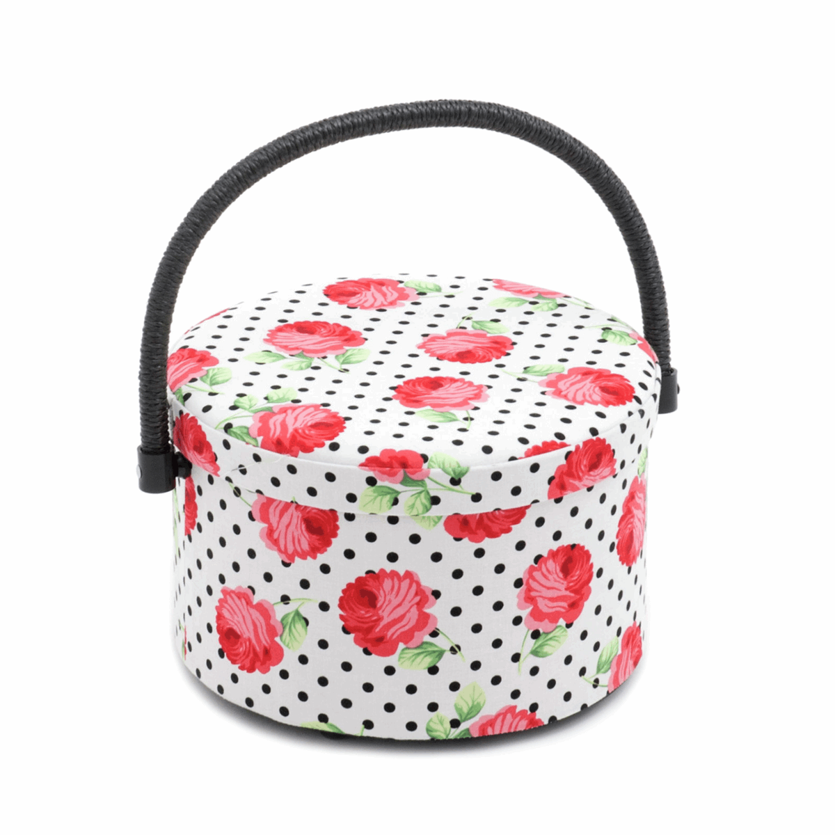 Lovely white and black spotty fabric with pink roses Sewing/Craft box.